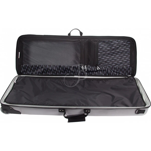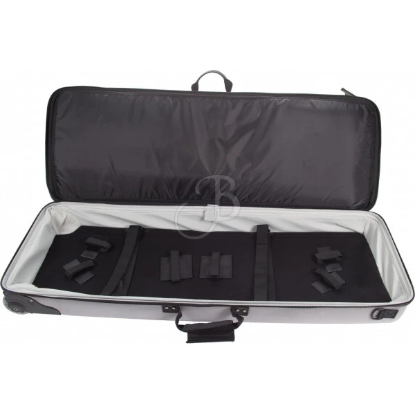 Le matériel est généralement transporté en utilisant le système de roulettes, tandis qu’une sangle d’épaule et poignée de transport représentent une option de plus.